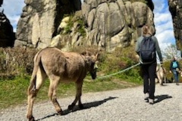 Erleben Sie die Mystik der Externsteine in Verbindung mit einem wunderbaren Tiererlebnis mit unseren Eseln.