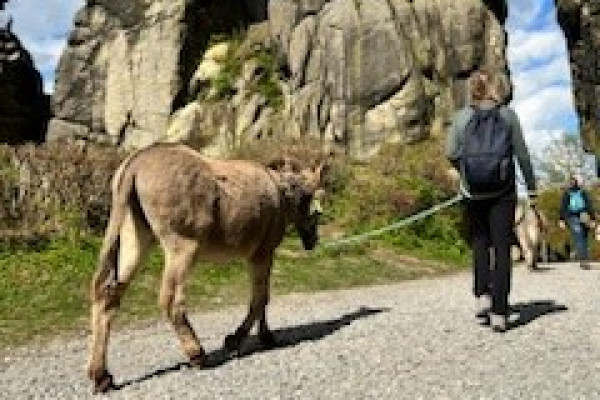 Mit den Eseln wandern wir mit Euch in der Walpurgisnacht zu den mystischen Externsteinen.