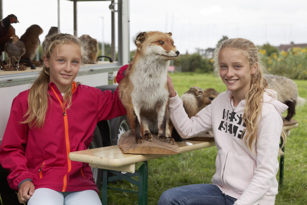 Lernen, Entdecken, Staunen - Neugier erwünscht, Anfassen erlaubt. Mit der Rollenden Waldschule der Kreisjägerschaft Lippe wird Kindern und Erwachsenen an der Stallscheune in Schwelentrup die Natur und Tierwelt näher gebracht und kann mit allen Sinnen erlebt werden.